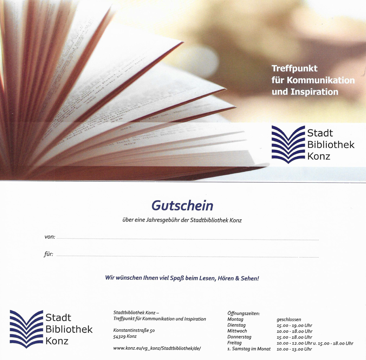 Die Stadtbibliothek Konz bleibt vom 22. Dezember 2025 bis einschließlich 1. Januar 2026 aufgrund der Weihnachtsferien geschlossen.